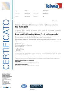 Dal 21-12-2012 l’impresa palificazioni ALSEO srl è stata certificata ISO 45001:2018 per i seguenti prodotti/servizi: