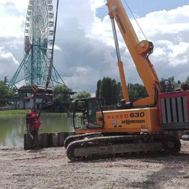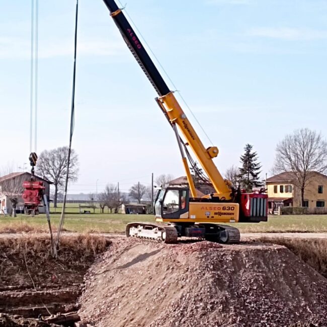 Protezione delle pareti di uno sbancamento in terreni sciolti e/o sotto falda: la paratia di palancole metalliche si inquadra in questo caso come una struttura provvisoria di sostegno dello sbancamento,che entra in esercizio immediatamente (senza quindi attendere la stagionatura del cls) e che è propedeutica non solo alla realizzazione dello scavo, ma anche di un eventuale muro di sostegno in c.a. gettato in opera. La presenza del gargame fornisce di per sé una certa tenuta idraulica; se necessario si possono realizzare giunti a tenuta d’acqua. L’accoppiata palancolata metallica e sistema well-point assicura lo scavo in perfetto asciutto.